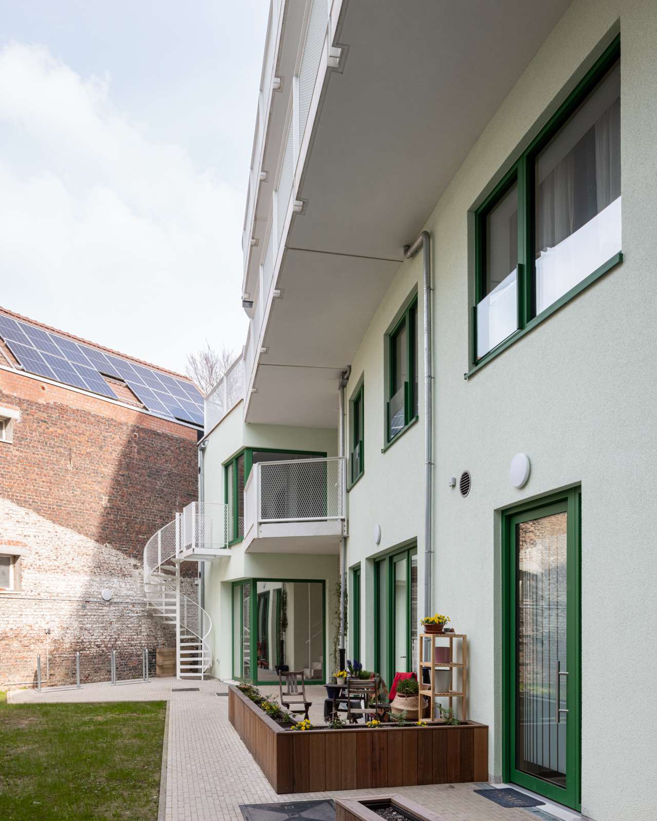 PT Architecten stelt voor om het perceel te herconfigureren in drie verschillende gebouwdelen waardoor er openingen ontstaan en er zonlicht kan schijnen in de gemeenschappelijke tuin. Deze worden bovendien ontmoetingsplaatsen voor de bewoners. Door middel van loopbruggen ontstaan er tussen de drie bouwprofielen terrassen in deze openingen.