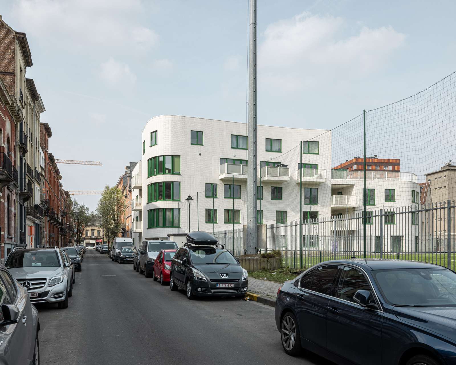 Wat betreft de inplanting wordt de hoek van het gebouw omgevormd tot een bocht voor een betere toegang tot de weg langs het voetbalterrein. Op die manier is ook de toegang tot het binnenterrein duidelijk en leidt dit naar een openbaar pleintje. Dankzij de beperkte grondinname komt er ruimte vrij voor de gemeenschappelijke tuin.
