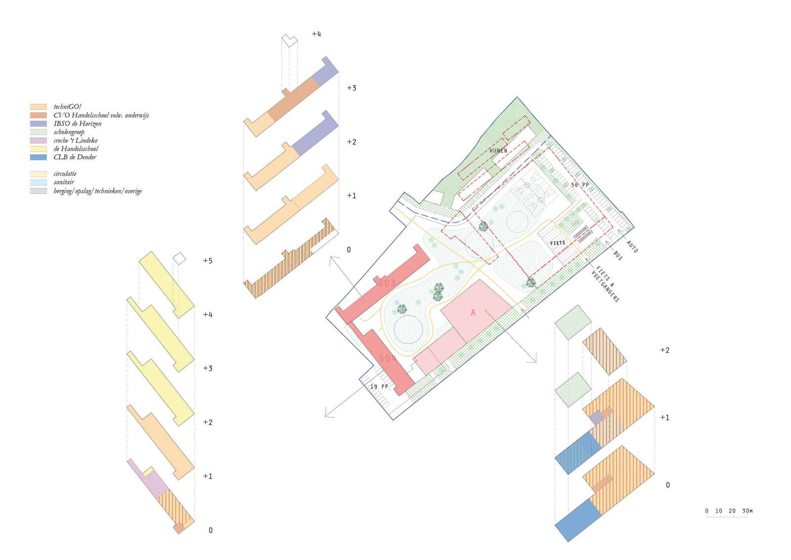 GO! Campus Voorstad huisvest verschillende onderwijsinstellingen en vormt de belangrijkste campus van de regio. PTA ontwikkelde een masterplan om de campusgedachte te optimaliseren en verschillende uitdagingen aan te pakken. Centraal stond het ruimtelijk en stedenbouwkundig onderzoek voor de inplanting van een nieuwbouwvolume van 5.000 m², ter vervanging van een asbesthoudend gebouw. Dit creëert ruimte voor de verhuis van GO! Handelschool Aalst en het CLB naar de site.