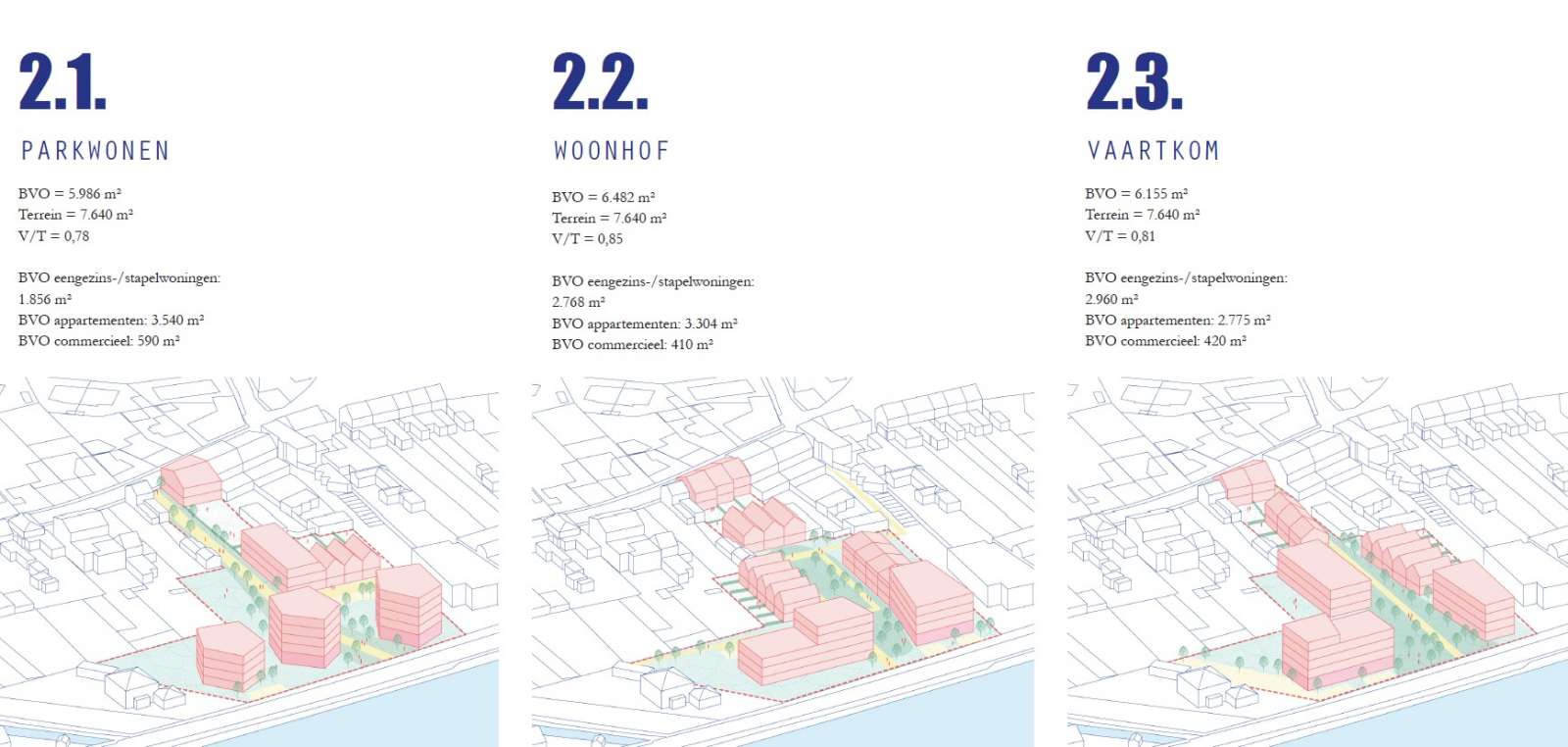 Het masterplan vertaalt deze oefening naar een heldere en doordachte inplanting voor een gemengd programma van ééngezinswoningen, meergezinswoningen en een handelsgelijkvloers aan de vaart. Binnen het geldende juridische en ruimtelijke kader (o.a. RUP) fungeert kwalitatieve, gedeelde en publieke open ruimte als structurerend principe. Zo ontstaat een gedragen en haalbaar toekomstbeeld dat een sterke ruimtelijke identiteit koppelt aan concreet ontwikkelingspotentieel.