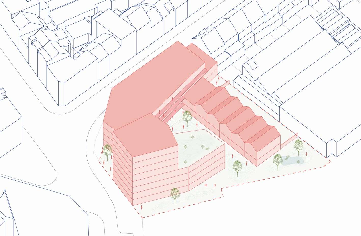 PTA voerde een volumestudie uit voor een nieuwbouwproject op de site van een voormalige Honda-garage in Anderlecht. Twee scenario’s werden onderzocht, elk met een eigen focus en programma.