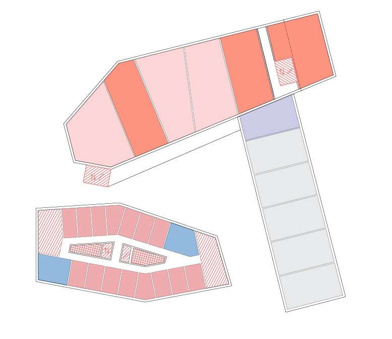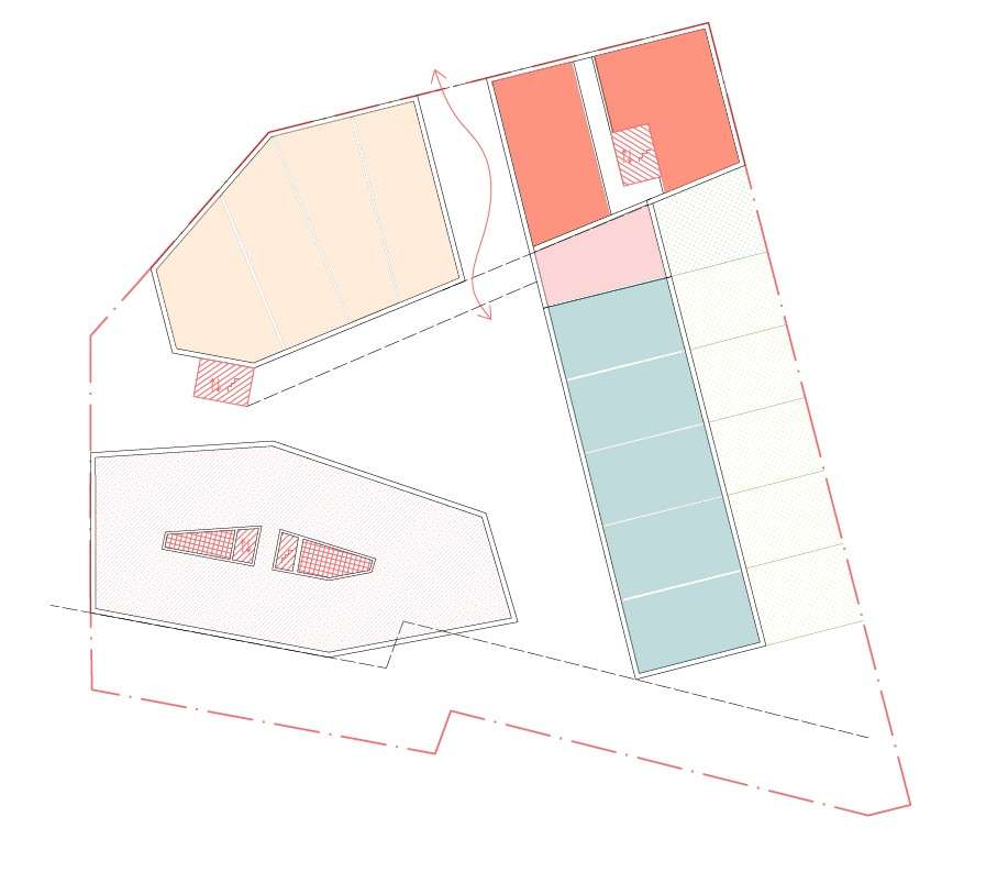 Scenario B – Woonmix: Het U-vormige volume blijft als structuur behouden, maar biedt een gevarieerd programma voor studenten én andere bewoners. Deze mix creëert een dynamische en inclusieve leefomgeving, met een aangename buitenruimte als gemeenschappelijk hart.